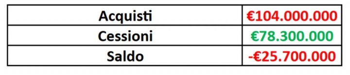 然而,仅考虑转会费(仅永久转会操作)的收支结余,米兰迄今为止的转会窗口呈现约2570万欧元的负值结余。